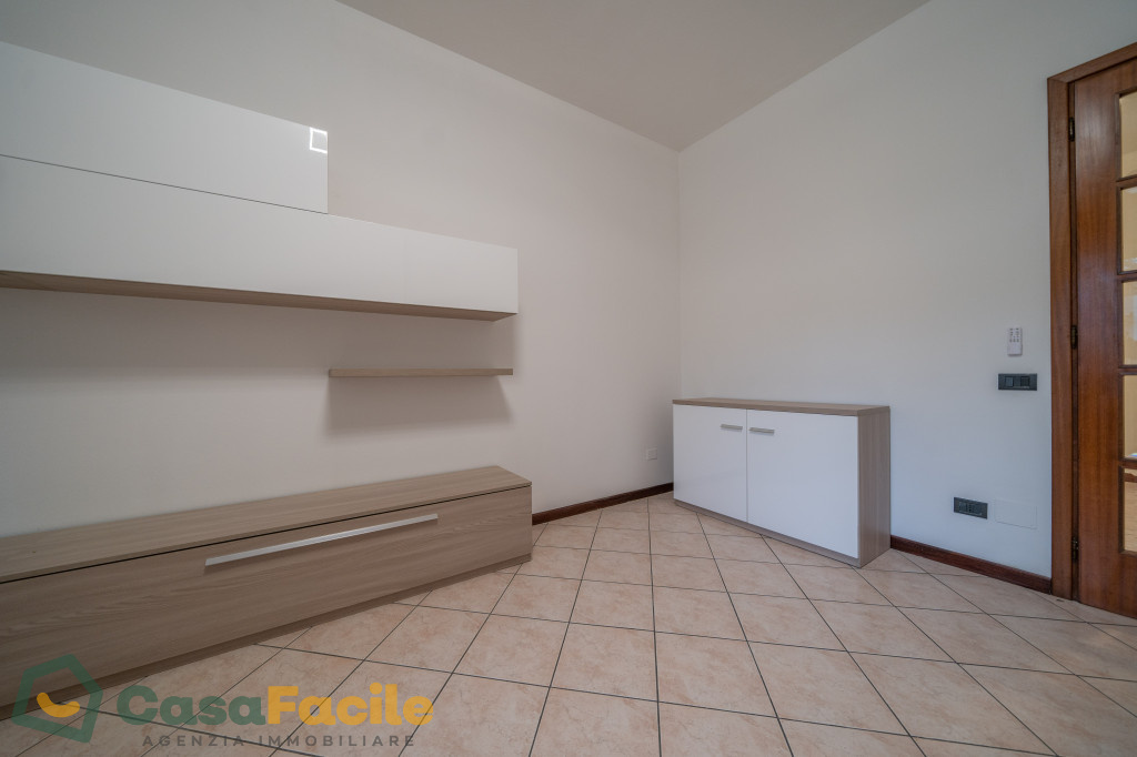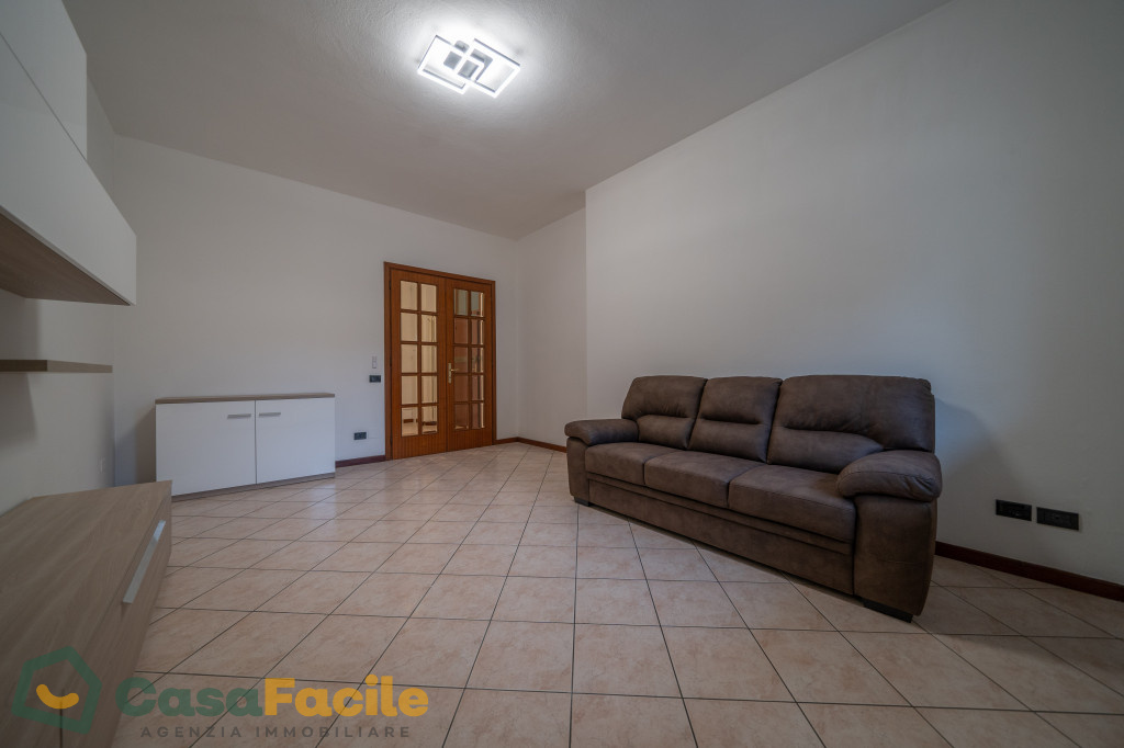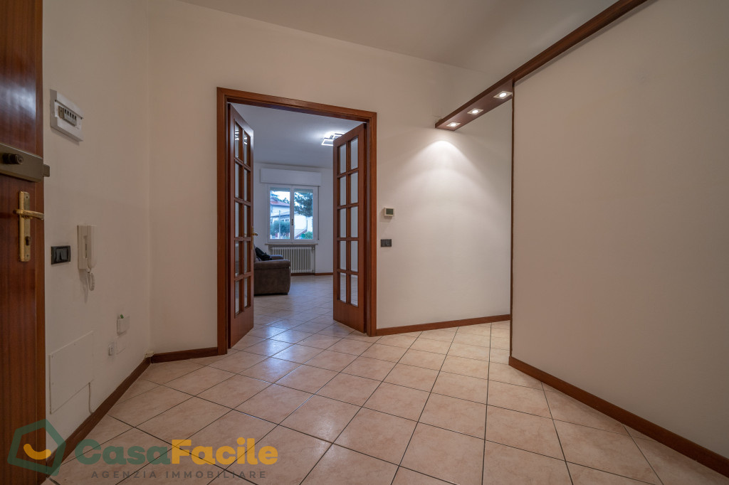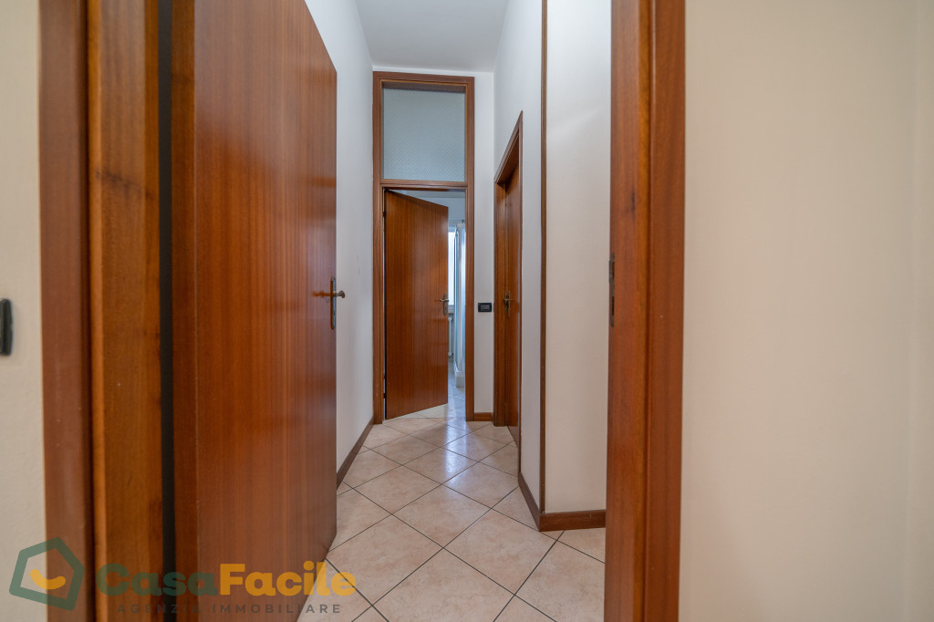 L’immobile è così composto: ingresso su ampio disimpegno, soggiorno luminoso, cucina, due camere (una matrimoniale e una singola) e bagno con box doccia.