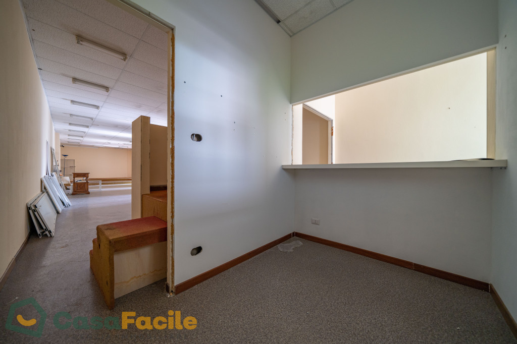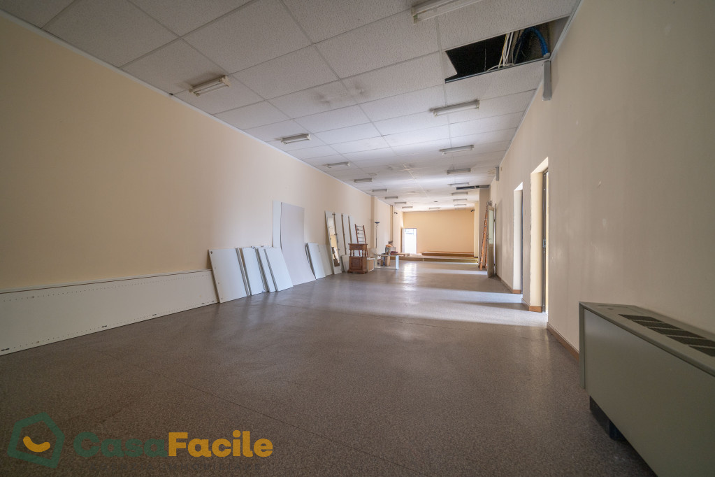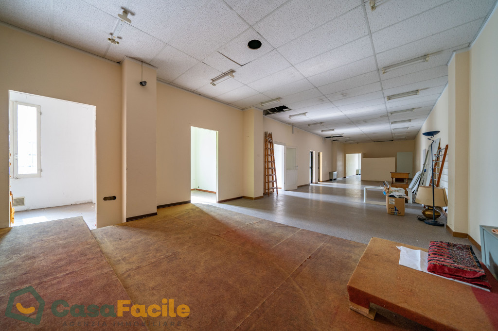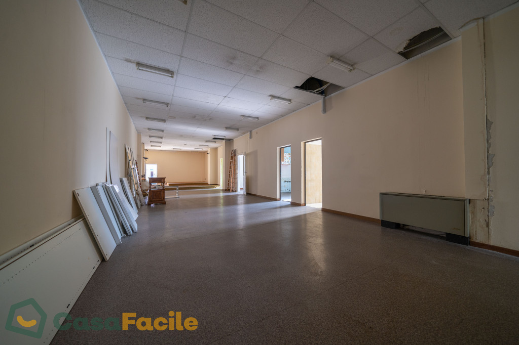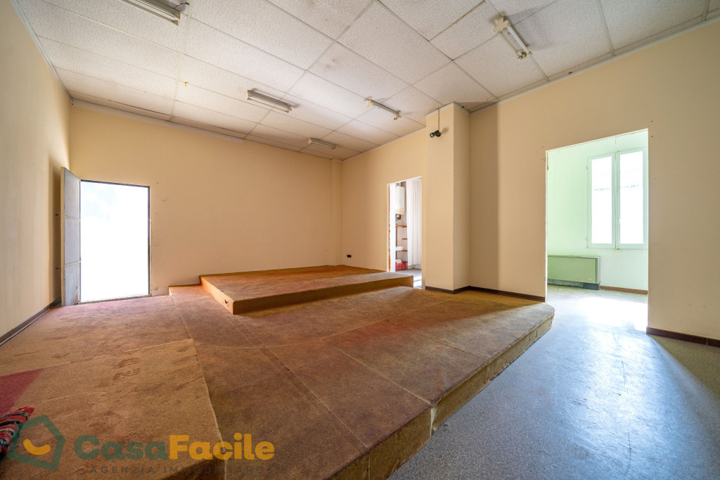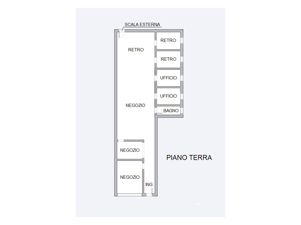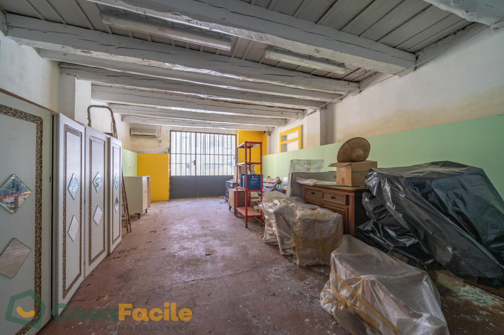 Al piano terra si sviluppa il negozio (in parte ad uso retro), così composto: ingresso su corridoio, una stanza con vetrina su strada, ampio locale open space dal quale si accede a cinque ulteriori stanze e al bagno.