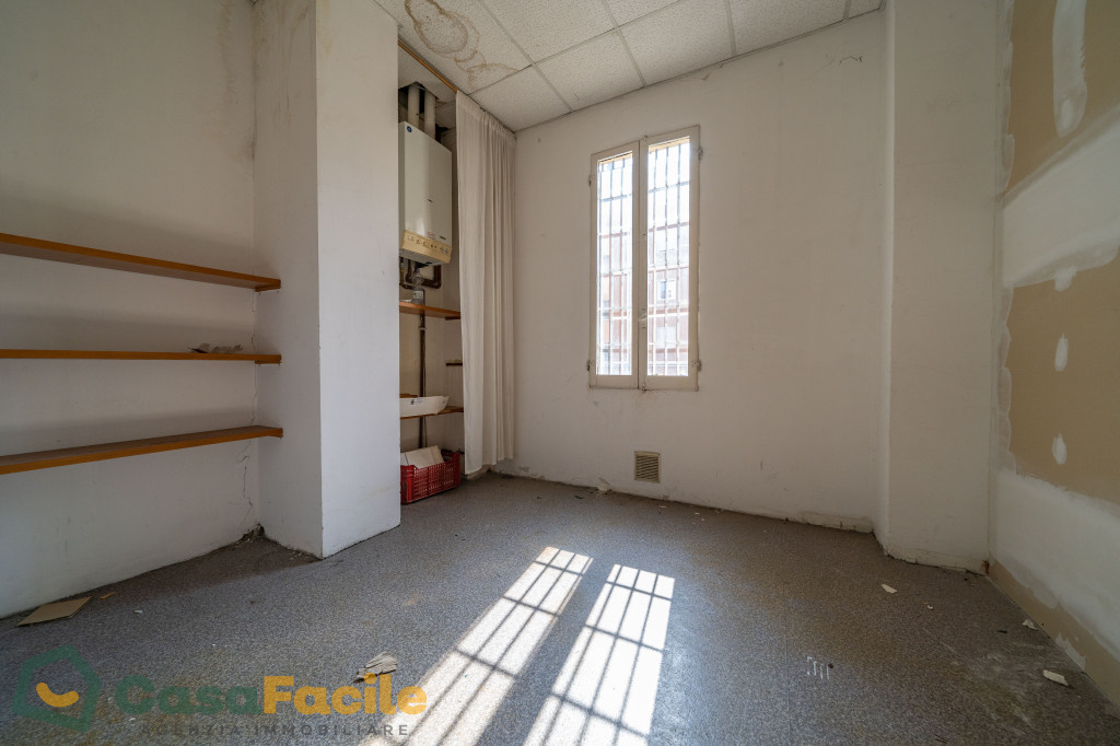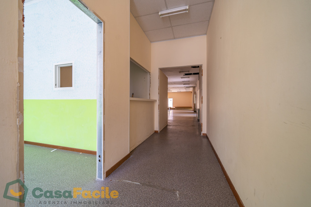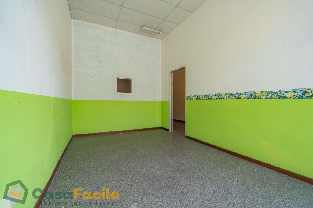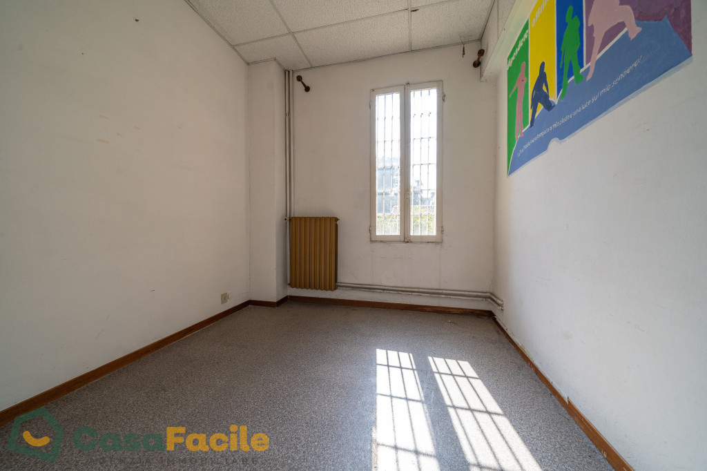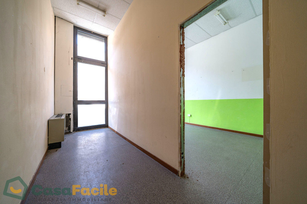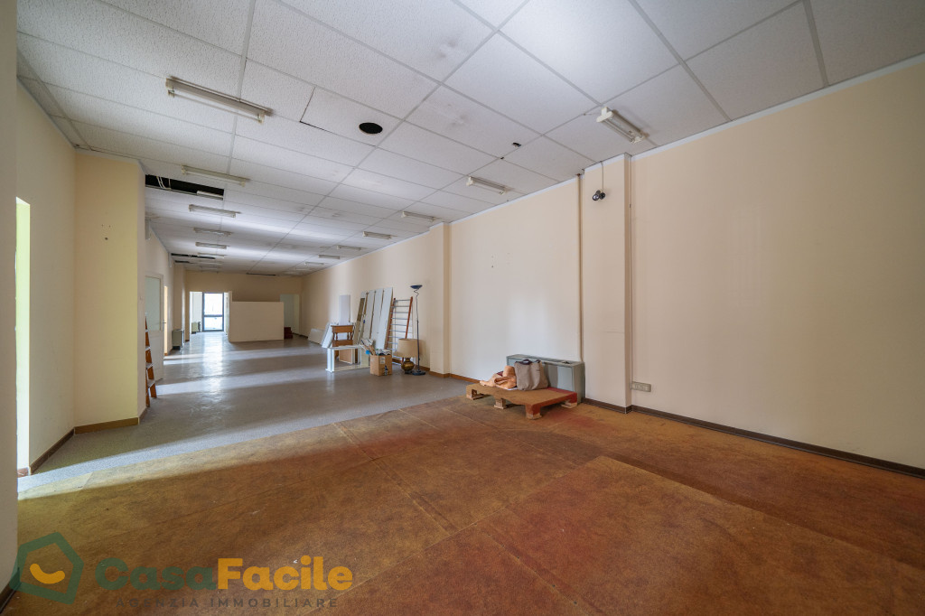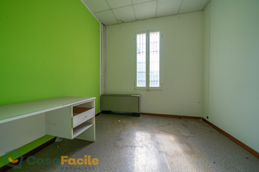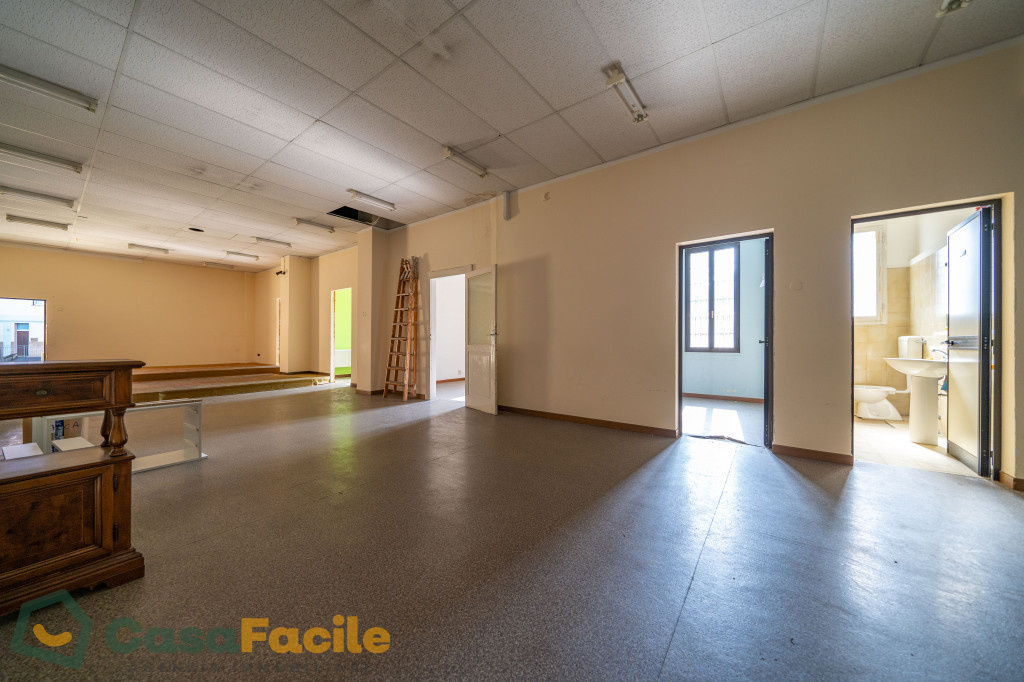 Al piano terra si sviluppa il negozio (in parte ad uso retro), così composto: ingresso su corridoio, una stanza con vetrina su strada, ampio locale open space dal quale si accede a cinque ulteriori stanze e al bagno.
