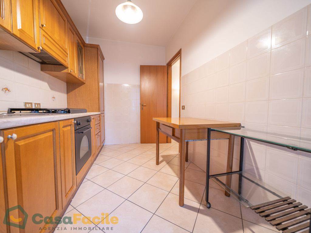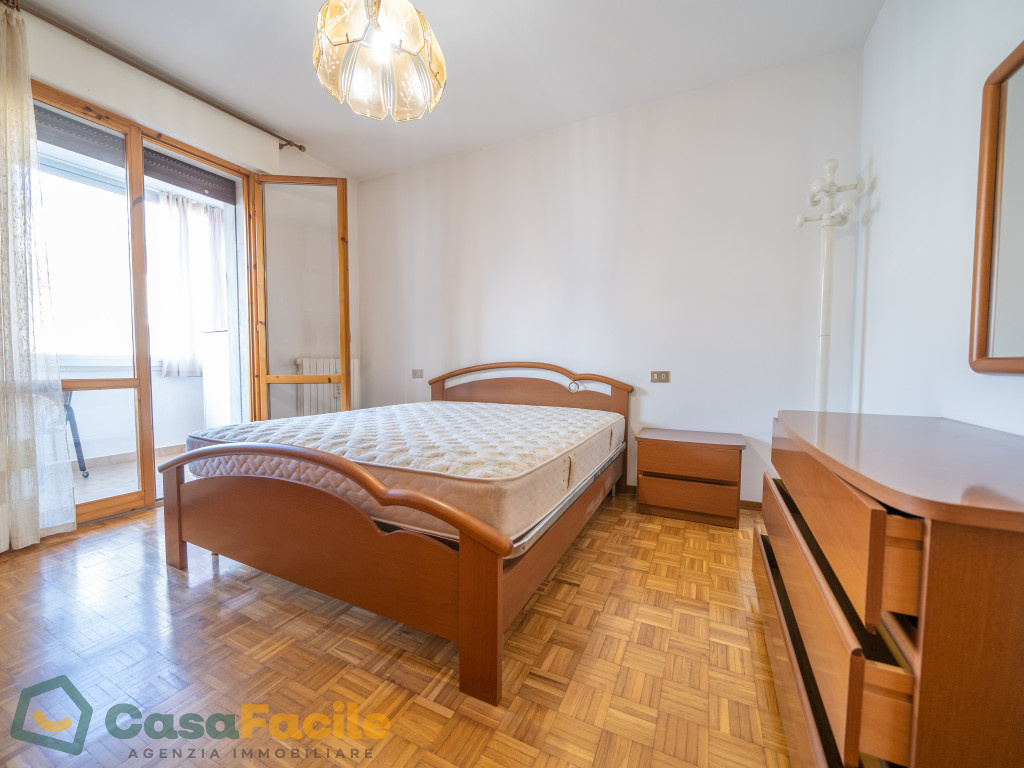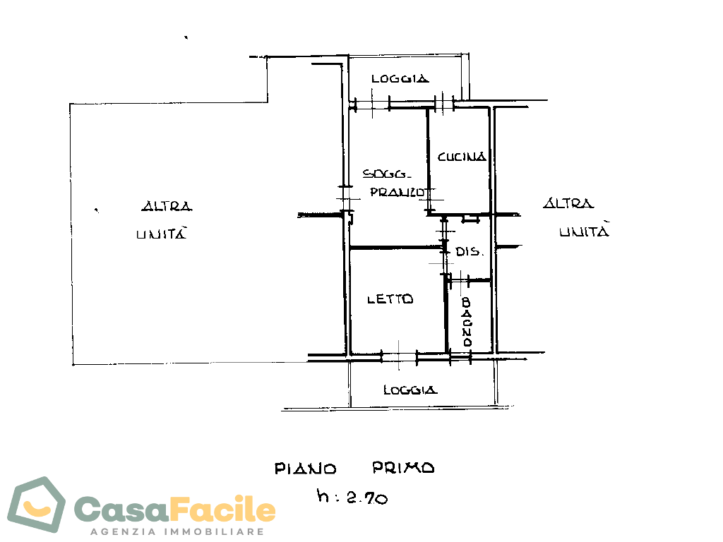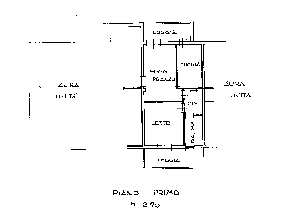 La disposizione interna comprende una zona giorno luminosa, suddivisa in soggiorno e cucina abitabile, entrambe con accesso a un balcone loggiato. Attraverso il disimpegno si accede a una camera matrimoniale con ulteriore balcone in loggia e a un bagno finestrato dotato di box doccia.