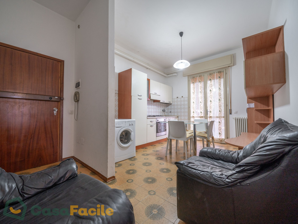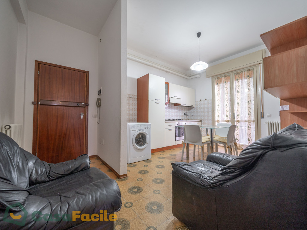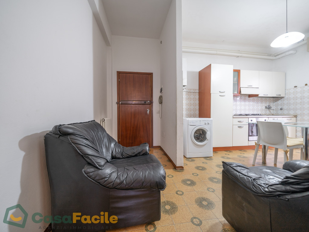 La soluzione internamente è composta da ingresso, soggiorno e angolo cottura dal quale è possibile accedere al balcone.