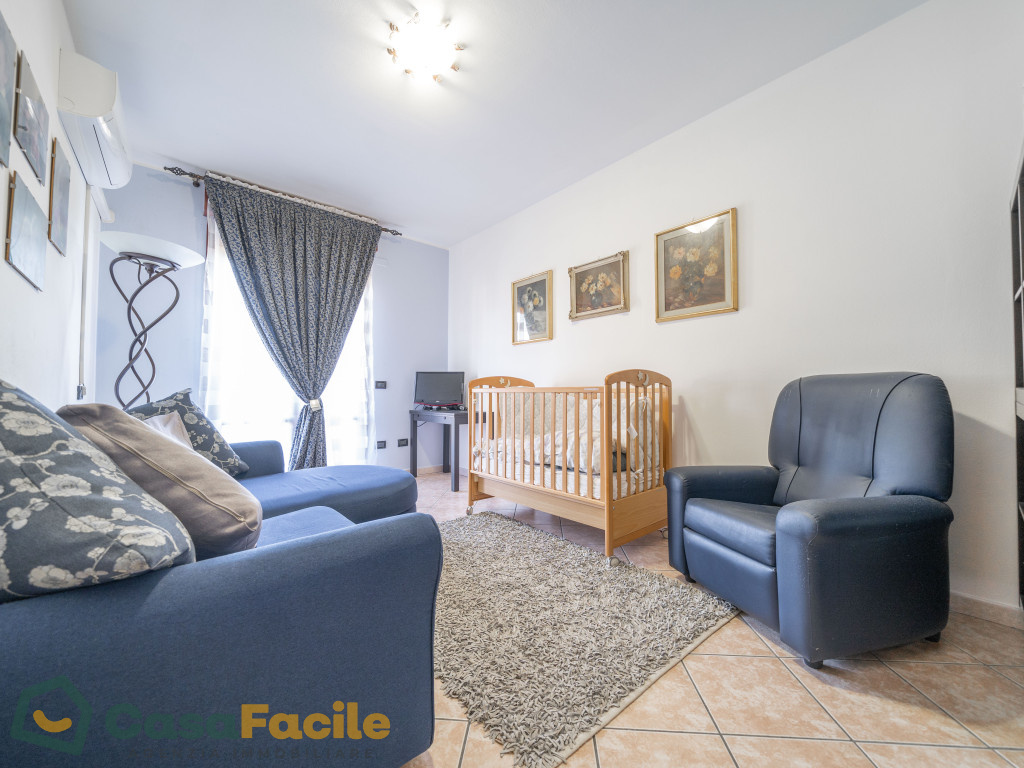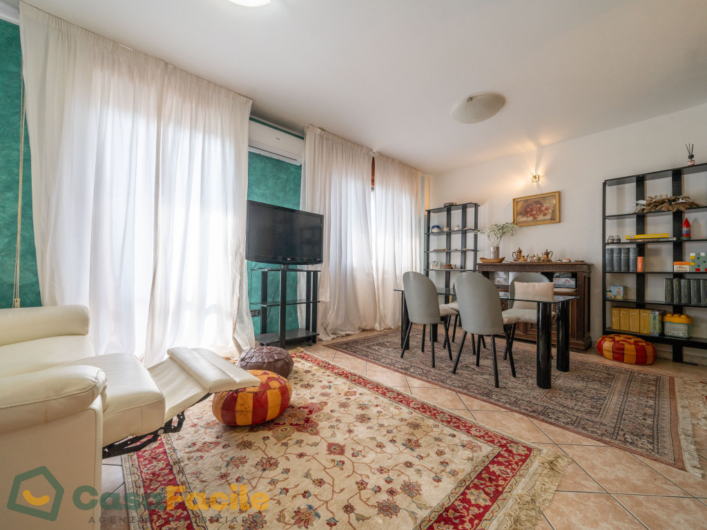 L'abitazione è così disposta: ingresso su soggiorno con angolo cottura ampio e luminoso con balcone, due camere da letto matrimoniali con un balcone per camera, un bagno ed un comodo ripostiglio.
