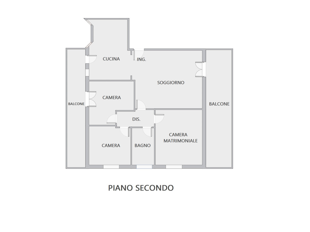 L’appartamento si sviluppa interamente al piano secondo ed è composto da ingresso su ampio soggiorno con terrazzo, cucina abitabile con secondo balcone verandato attualmente adibito a zona lavanderia. La zona notte, separata da un comodo disimpegno, comprende tre camere da letto e un bagno finestrato.