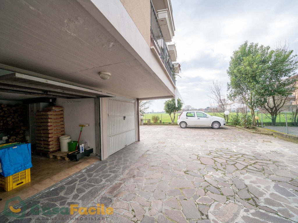 Completano la soluzione il garage e la cantina di proprietà al piano terra, oltre alla possibilità di parcheggiare due auto all’interno della corte condominiale.