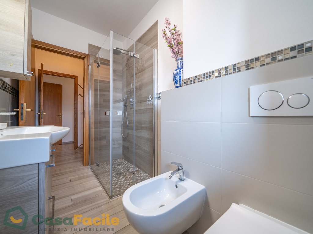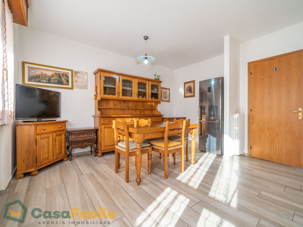 Completano la soluzione il garage doppio e la cantina di proprietà al piano interrato, possibilità di parcheggiare l'auto all’interno della corte con posti auto condominiali.