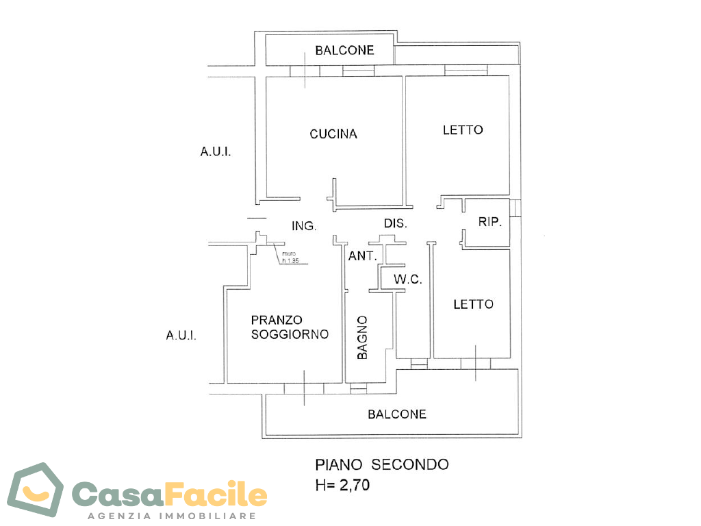 L’appartamento si sviluppa interamente al piano secondo servito d'ascensore ed è composto da ingresso su soggiorno con accessso ad un comodo terrazzo con vista, ampia e comoda cucina abitabile con secondo balcone. La zona notte, separata da un comodo disimpegno, comprende due camere da letto, due bagni finestrati ed un ripostiglio.