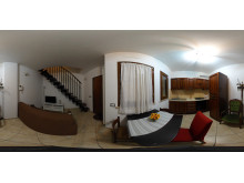 Gli ambienti sono così disposti: ingresso al piano terra su soggiorno con angolo cottura, scale che portano al piano primo dove troviamo il disimpegno, una camera da letto, un ampio bagno e un balcone con comoda zona lavanderia.