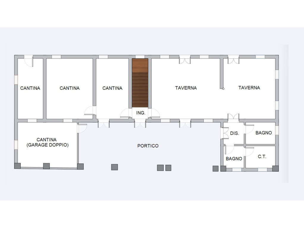 Al piano terra dell'abitazione troviamo un ampio porticato, numerose cantine dove poter ricavare una spaziosa taverna con camino, un comodo bagno, un ripostiglio con zona lavanderia/centrale termica e un garage doppio (attualmente accatastato come cantina).