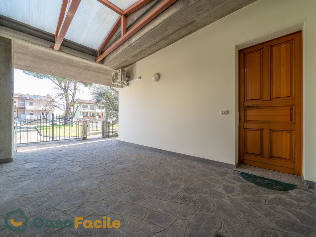 All’esterno troviamo un portico coperto, uno splendido giardino, garage con zona lavanderia e posti auto all’interno della proprietà.