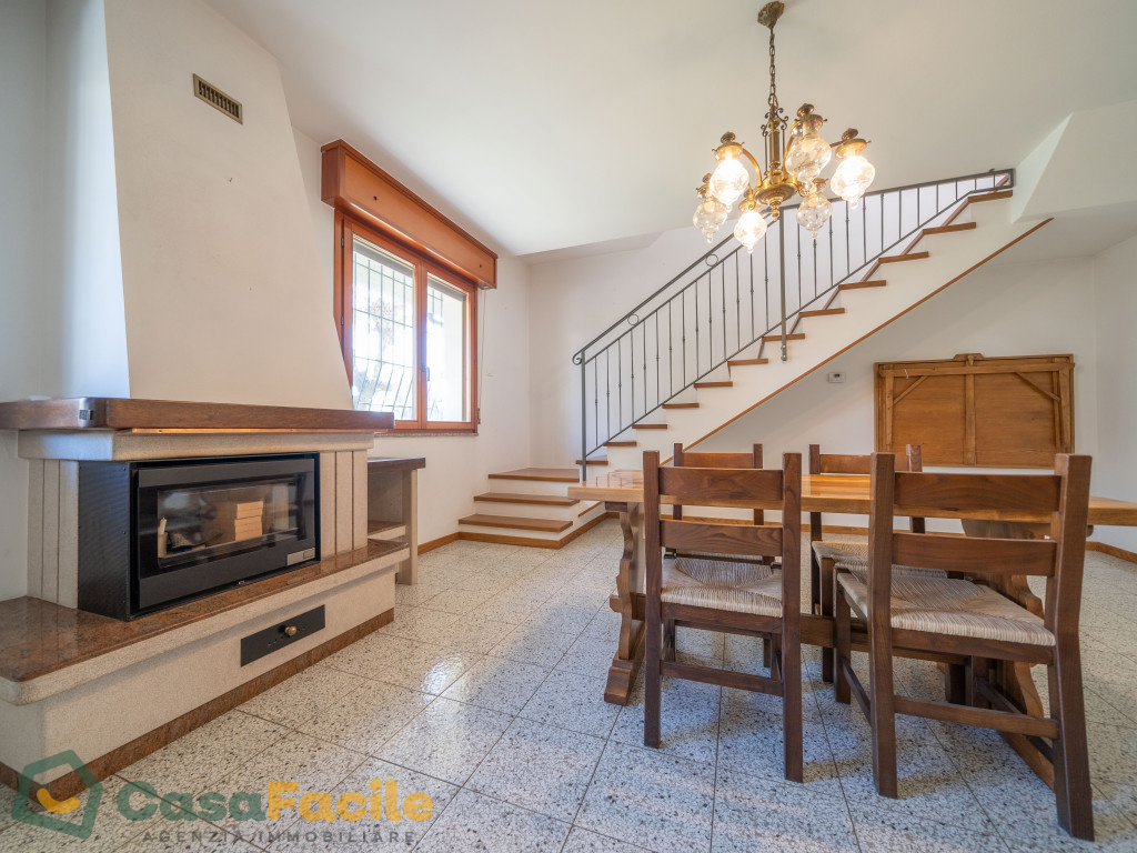 - Piano interrato: ampio e suddiviso in più ambienti, tra cui cantine, tavernetta con camino e centrale termica.