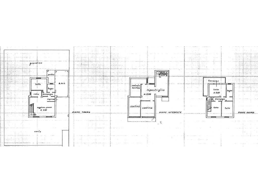 - Primo piano: zona notte con disimpegno, una camera matrimoniale con accesso a terrazzo, due camere doppie e un secondo bagno con doccia.