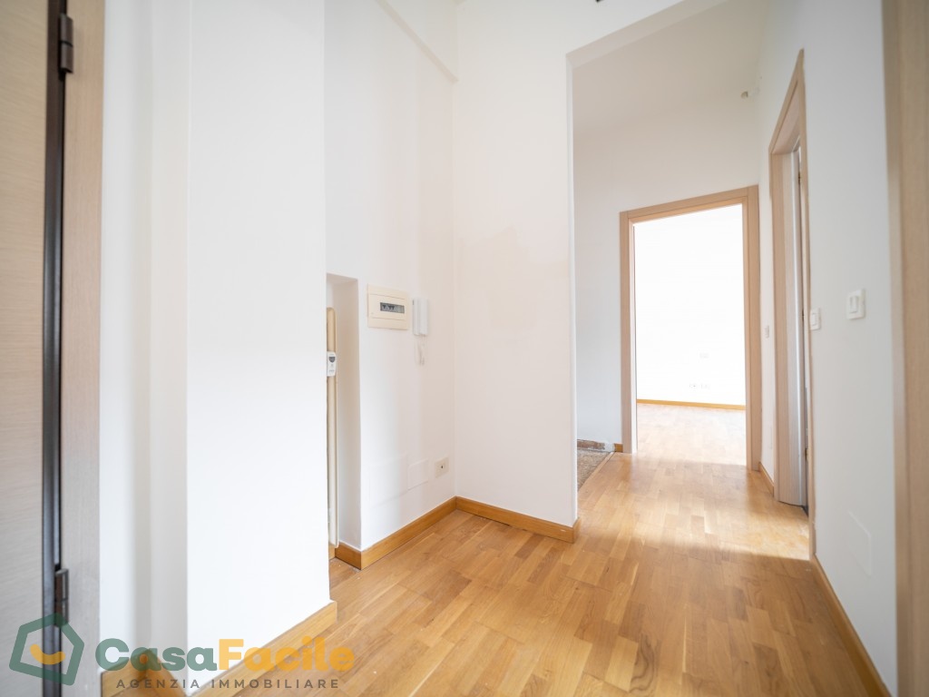 L'abitazione si sviluppa al quarto piano servito da due comode ascensori e si compone di ingresso, soggiorno con cucina a vista il quale offre l'accesso ad un balcone, disimpegno con armadio a muro, camera matrimoniale, uno studio/cameretta e un bagno finestrato.